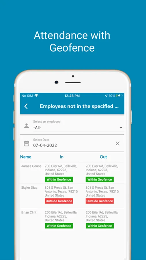 6. Geofence: Set up virtual boundary for Employees. Get insight on employees outside the desired location.