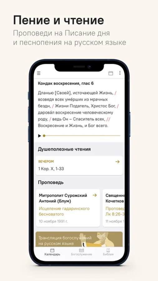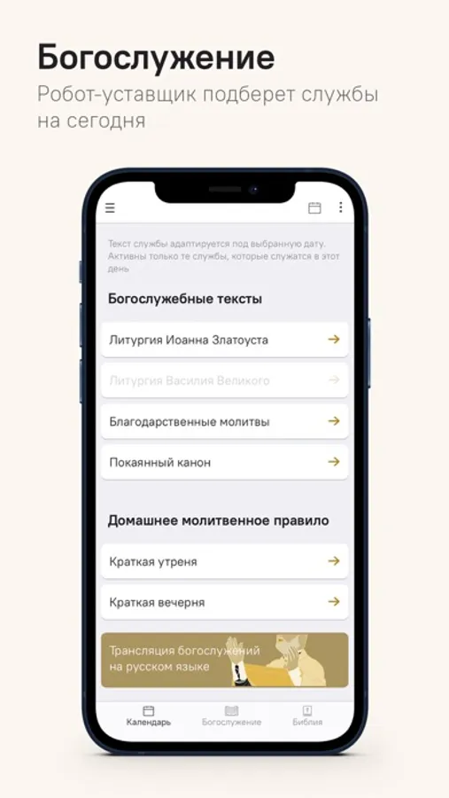 Контент приложения будет постоянно пополняться, а его приятный дизайн позволит Вам быстрее входить в дух и смысл православного богослужения.