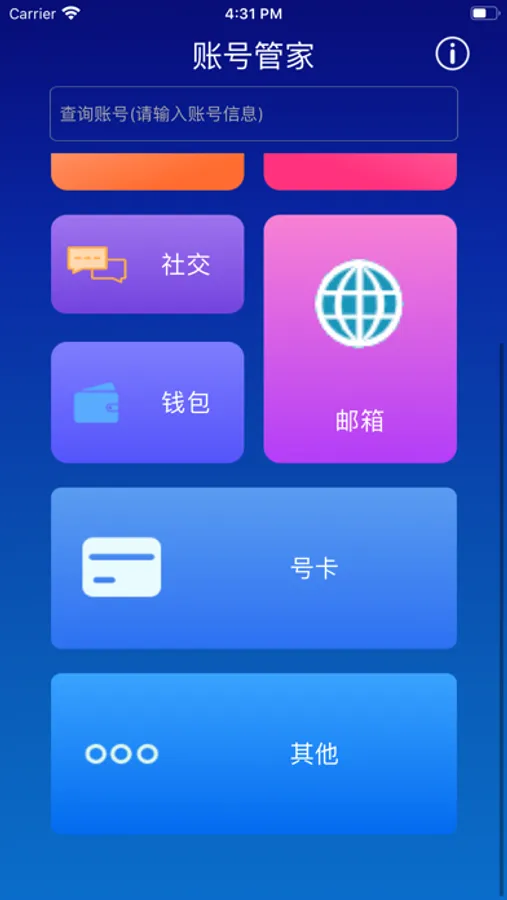 这是一款用于账号保存的App,数据仅只保存在手机;支持账号分类保存管理,快捷搜索账号,非常贴心的账号密码保护工具