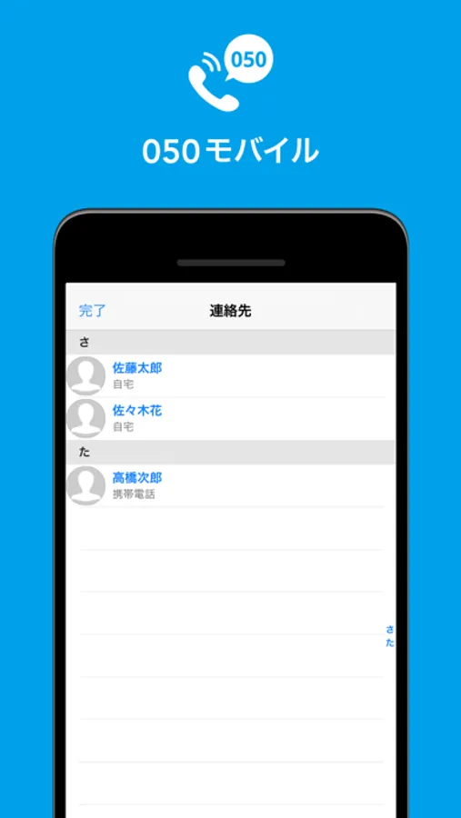・電話帳はお客様が既に登録している連絡先を自動で取り込むため、面倒な連絡先の登録作業は必要ありません。
