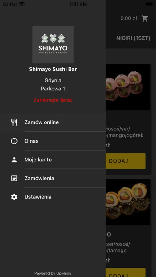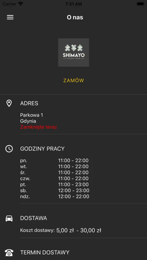 Oprócz zamawiania online aplikacja pozwala sprawdzić: