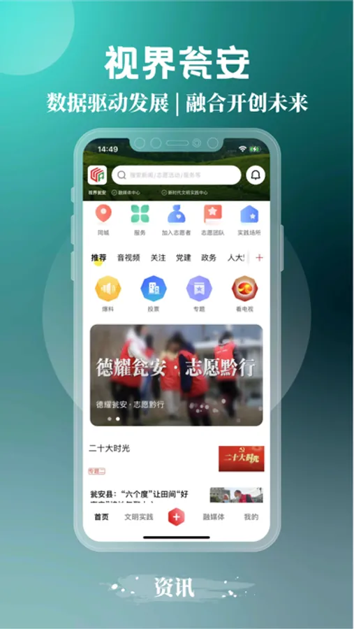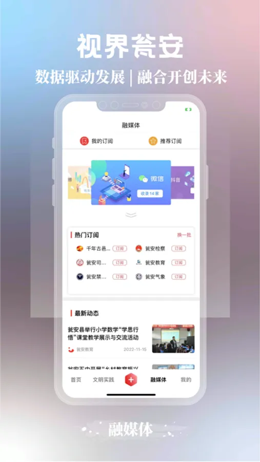“视界瓮安”APP由中共瓮安县委宣传部主办,瓮安县县融媒体中心运营,致力于用“媒体+”打通服务群众的“最后一公里”,通过整合政府资源,创新服务途径,集新闻、民生、政务、服务于一体,实现“一体化融合运营联动、一屏‘智’享生活服务,一端‘玩’遍大美瓮安”的目标。