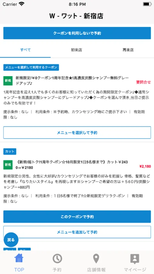 お得なクーポンが配信されます。ネット予約時にクーポン利用での予約も可能なので来店時もスムーズに施術頂けます。