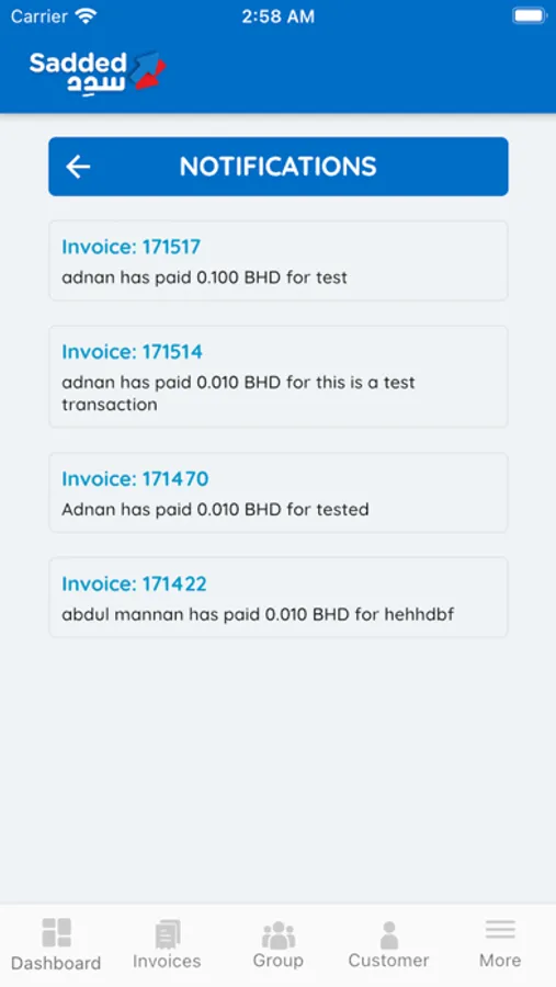 Track, manage and view invoices and get live notifications when your customer has paid for an invoice. Sadded is a powerful tool to manage your customers, customer groups and invoices. Below are the key features that are integrated in Sadded app to help merchants get paid in a secure and easy way.
