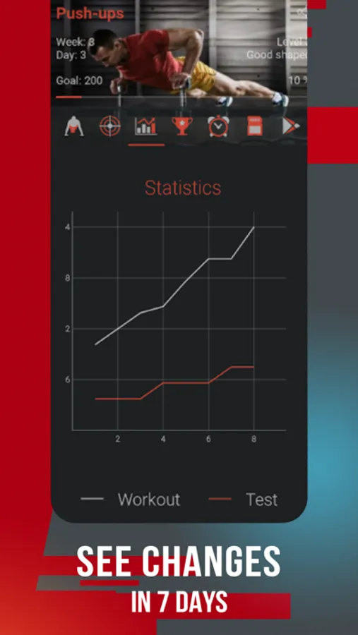 Each week you will have your personal workout goals. Achieve it to get to the next level.