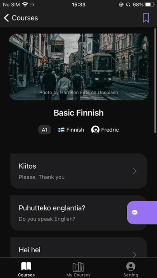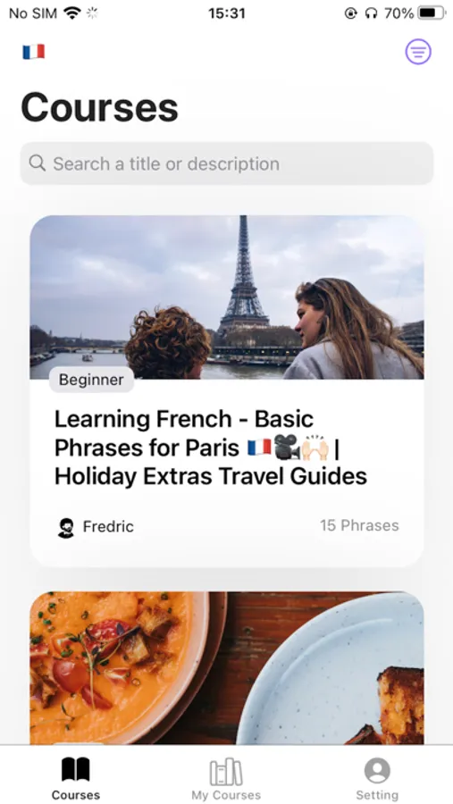 Nativeway doesn’t provide pre-designed courses. All users are free to choose their own set of phrases. Users can see what phrases other users have in their collections.