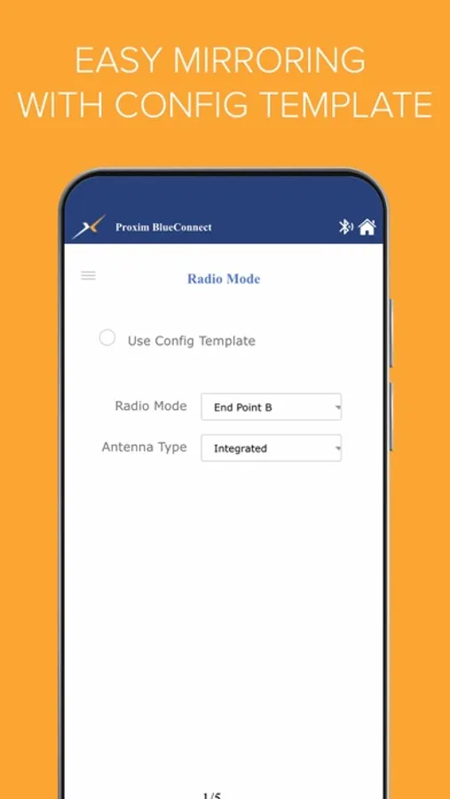 With BlueConnect app on your mobile device, you can connect to a Proxim device using passkey configured on the device and perform: