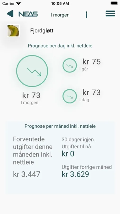 Basert på ditt historiske strømforbruk regnes det ut prognoser som gir deg en forutsigbarhet mtp utgifter, og muligheten til å planlegge bedre.