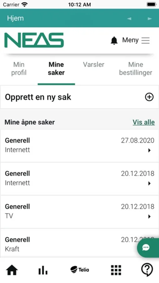Dine innmeldte saker, være det seg Wifi-problematikk eller en fakturafeil. Her har du full oversikt over dine saker i vårt kundesystem, med mulighet til å kommunisere med kundesenteret direkte i en sak.