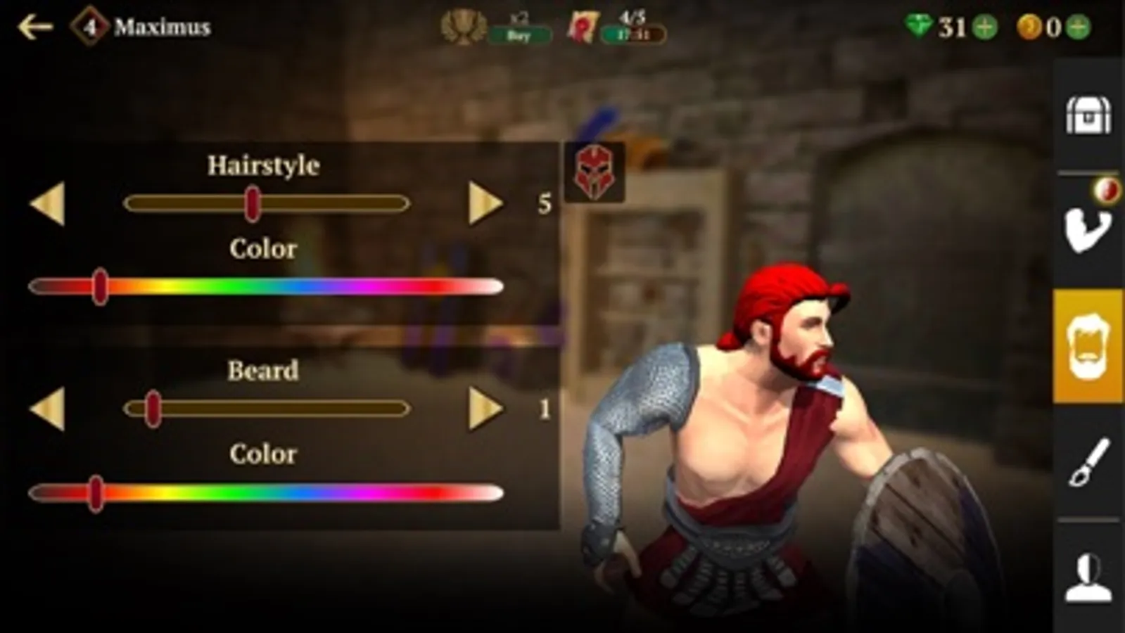 - Create the most unique armor, hairstyle and the beard of real gladiator