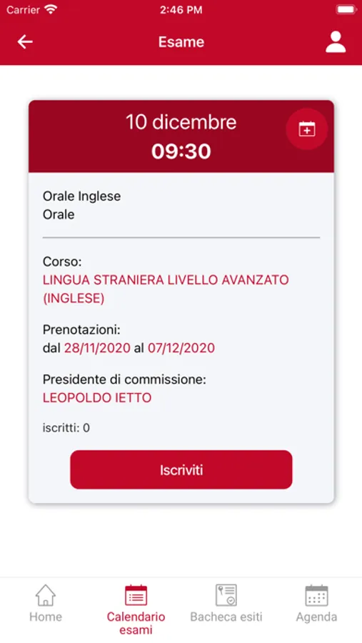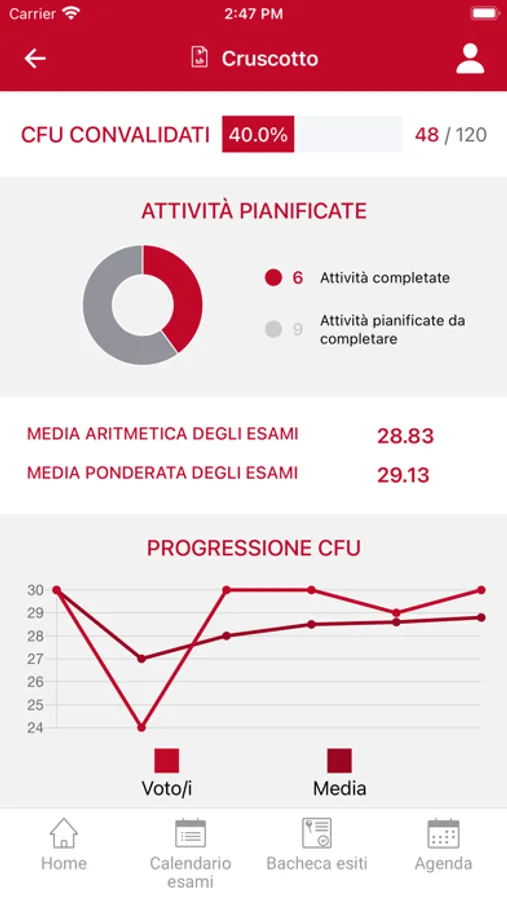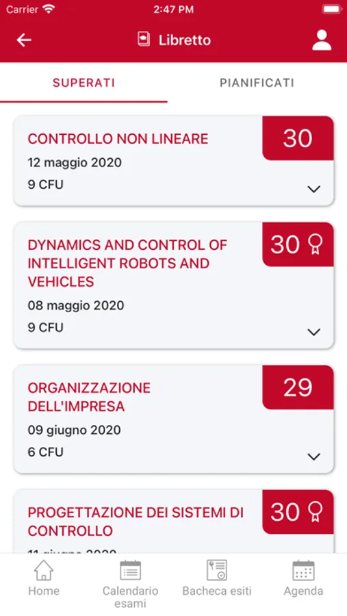 Nell’app puoi scorrere la lista dei tuoi esami, prenotarli e controllare gli esiti di quelli sostenuti.