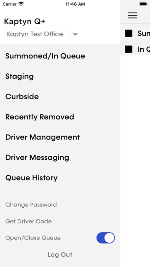 This app allows the queue administrator to summon Kaptyn drivers, enable/disable the queue, and manage drivers and vehicles.