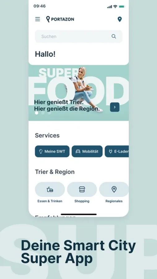 Portazon verbindet Dich mit Unternehmen, Händlern, Gastronomen und Dienstleistern aus Trier und der Region. Wir sehen uns dabei als Partner der lokalen Anbieter und wollen gemeinsam mit Dir die Region stärken. Mit der Smart City Super App erlebst Du völlig neue Produkt- und Serviceangebote und erledigst Aufgaben Deines Alltags einfach und bequem über Dein Smartphone.