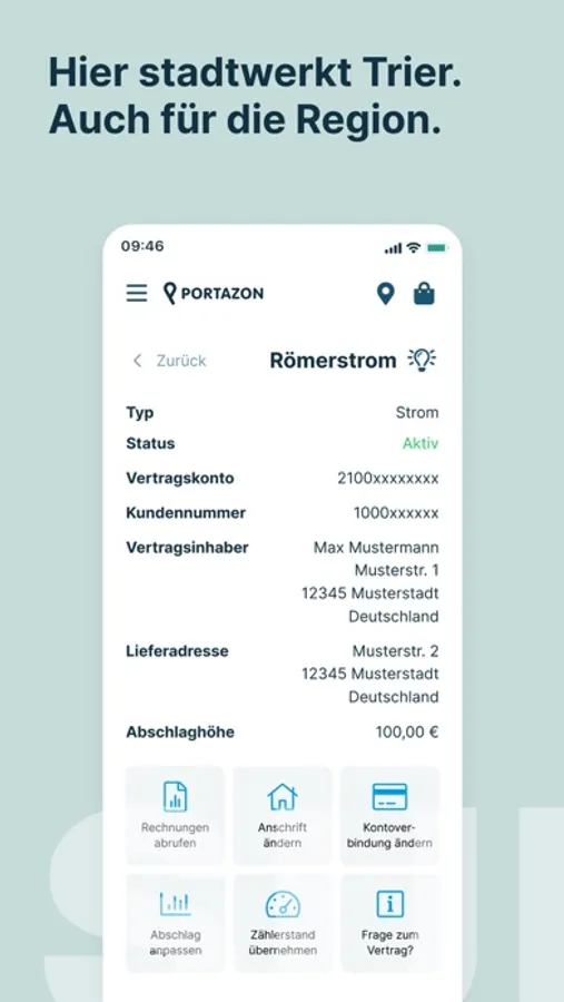 Verknüpfe Deine Energieverträge der Stadtwerke Trier und verwalte diese direkt in der App. Ob Datenanpassungen, Zählerstände, Abschläge oder Rechnungen. Mit Portazon hast Du alle Deine Verträge immer im Blick.