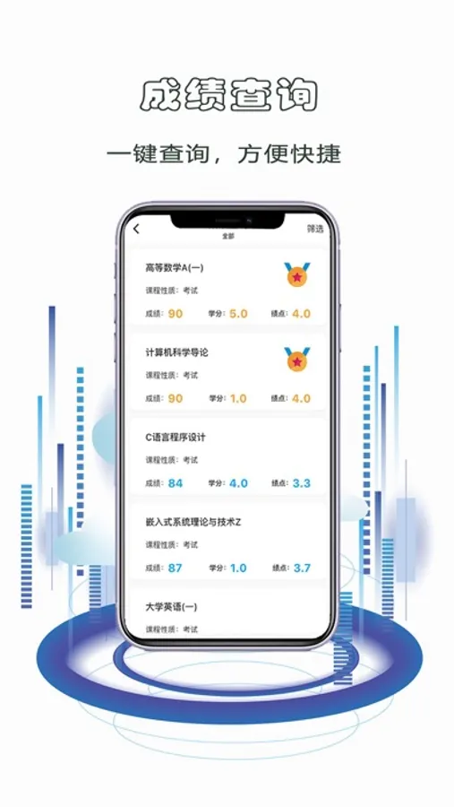 【看成绩】支持选择类型与学期,支持查看成绩单,看绩点快人一步!