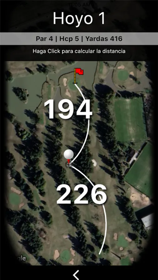 Ubicación y Distancia de todos los hoyo de la cancha.