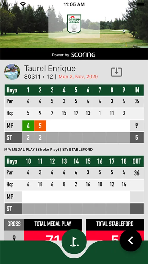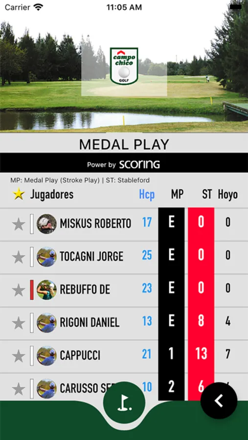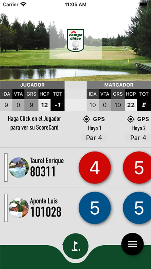 Vista completa de la Tarjeta de juego haciendo click en el nombre de cada jugador. Ahi encontrara todos los golpes y los detalles de los hoyos (como el Par, Handicap, etc).