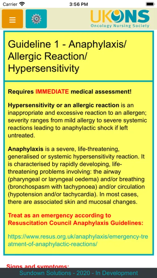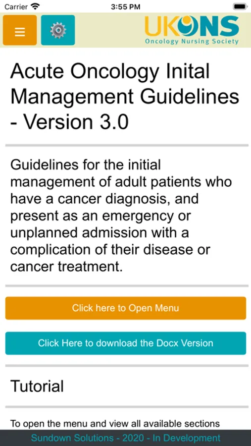 The information contained in these guidelines is a consensus of the development and consultation groups' views on current treatment. They should be used in conjunction with any local policies/ procedures/ guidelines and should be approved for use according to the trust clinical governance process. Care has been taken in the preparation of the information contained in the guidelines. Nevertheless, any person seeking to consult the guideline, apply its recommendations or use its content is expected to use independent, personal medical and/or clinical judgment in the context of the individual clinical circumstances, or to seek out the supervision of a qualified clinician. The United Kingdom Oncology Nursing Society makes no representation or guarantee of any kind whatsoever regarding the guidelines content or its use or application and disclaim any responsibility for its use or application in any way.