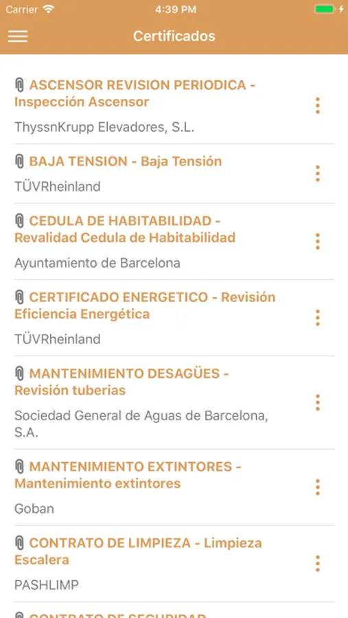- Industriales habituales, certificados, pólizas de seguro y contratos de mantenimiento.