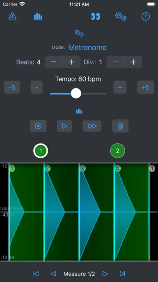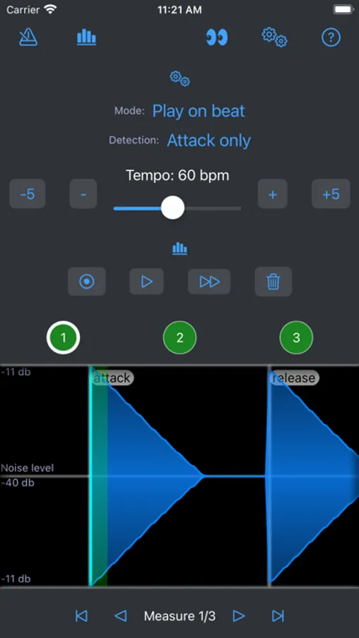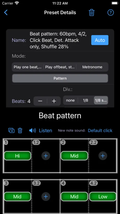 * Playing modes On-beat, Off-beat, Metronome and Beat-pattern.
