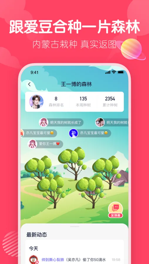 2、可以和你的爱豆一起种树,收集水滴种下的每棵树,我们会在西部地区真实种下。