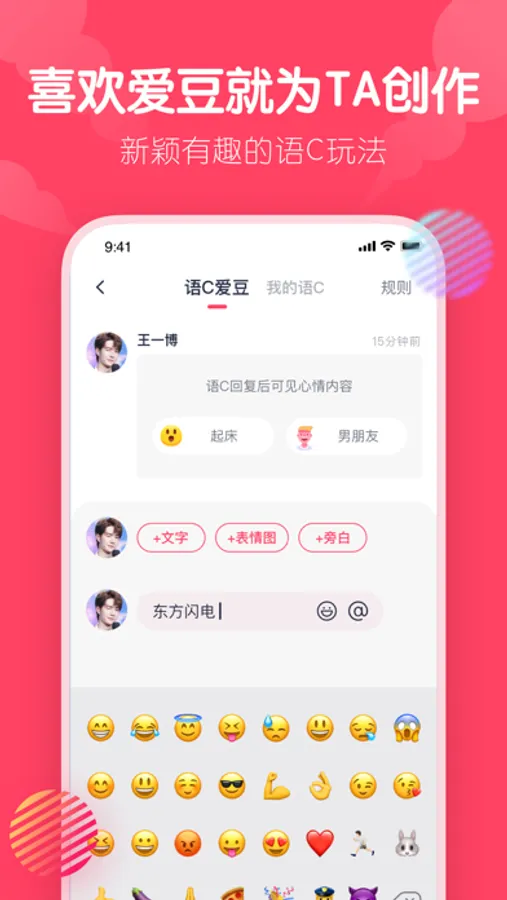 在这里你可以尽情和爱豆分享你的故事和各种小秘密,TA都会第一时间回复你