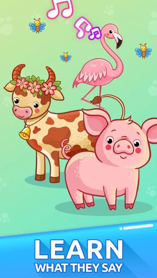 Your child will receive a phone with 3 mini-games: animal voices, numbers, and simple sounds. Using the phone, they will call different animals and learn their looks from colorful pictures and the sounds they make. This game will show your kiddos the cat, the dolphin, the goat, and sheep and many more.