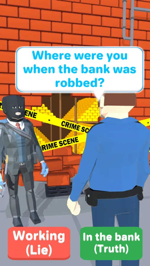 Be smarter than the cop and answer the right sentences to avoid being jailed! Customise your lair and become the richest criminal ever!
