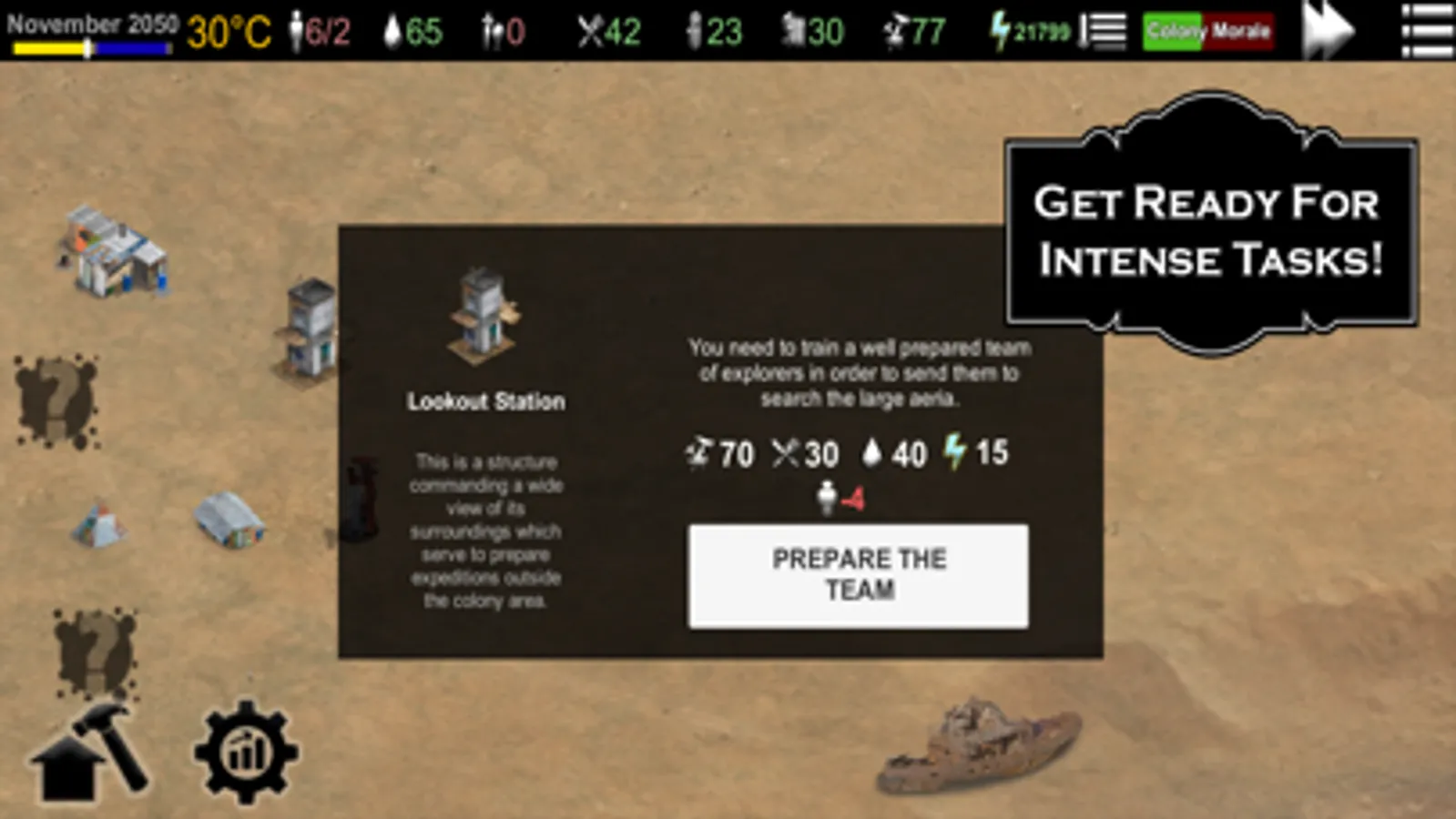 * You will need to research and build the infrastructure and buildings for the colony and make sure that they all have the resources they need to live and thrive.