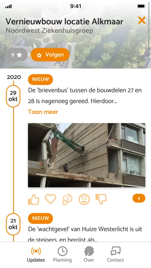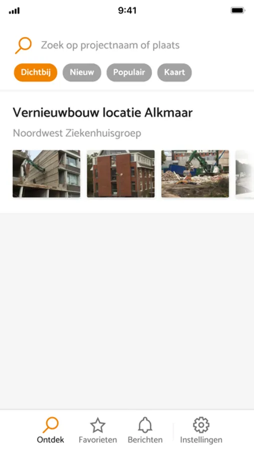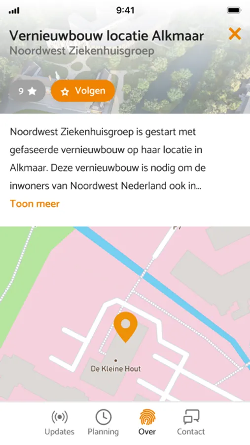 Noordwest Ziekenhuisgroep is gestart met gefaseerde vernieuwbouw op haar locatie in Alkmaar. Deze vernieuwbouw is nodig om de inwoners van Noordwest Nederland ook in de toekomst hoogwaardige, veilige en vernieuwende zorg te kunnen bieden. In de eerste fase gaat het om de nieuwbouw van de acute as (met operatiekamers, spoedplein met onder andere spoedeisende hulp, intensive care en verpleegafdelingen complexe zorg), de aanleg van een parkeergarage direct onder het gebouw en de renovatie van Huize Westerlicht. Met deze Noordwest Bouwt App houden we de omgeving op de hoogte tijdens de bouwwerkzaamheden.