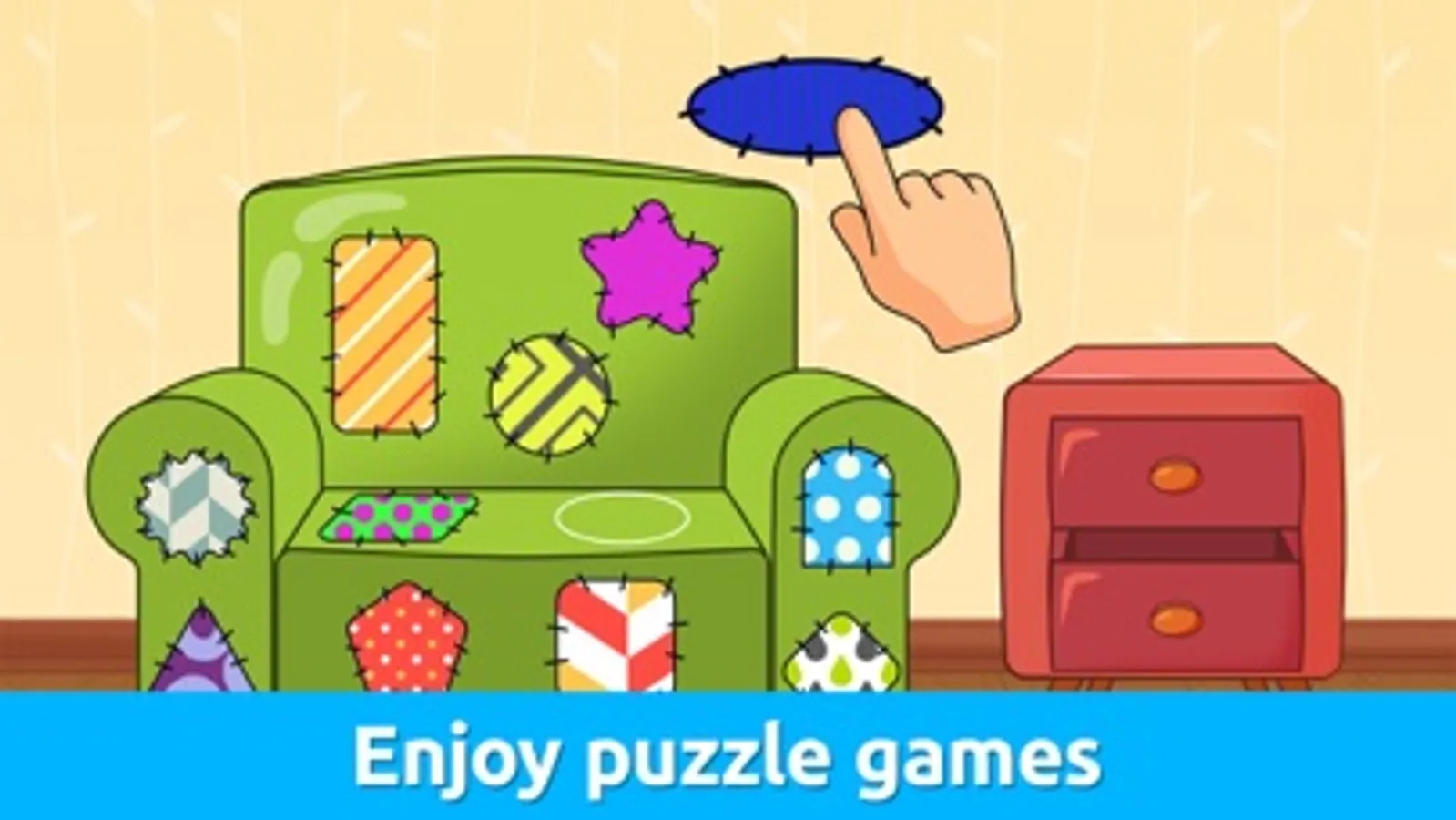 - Forms. Fix the sofa by placing the patches correctly in shape and color. Game teaches simple geometric shapes.