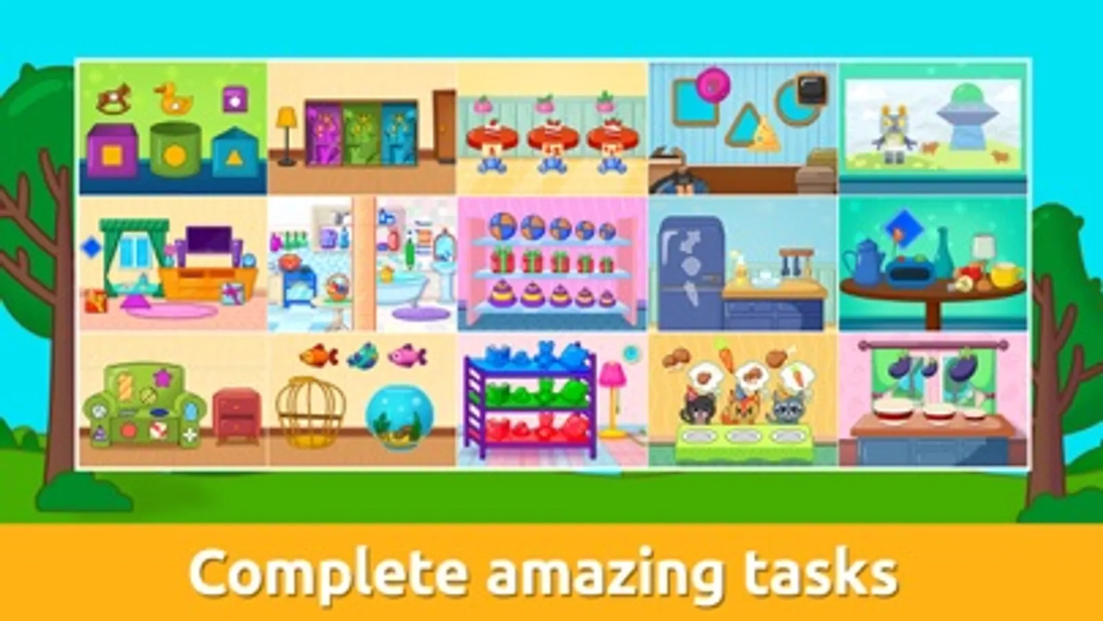 Our app contains 15 educational activities for children that will allow them to learn while playing. These kids games will help boys and girls develop logic, memory, attention, visual perception, fine motor and creative skills.