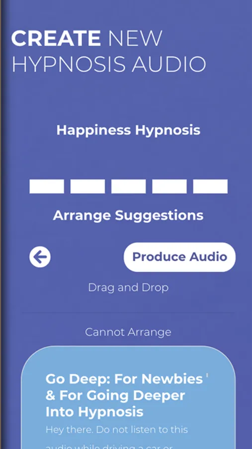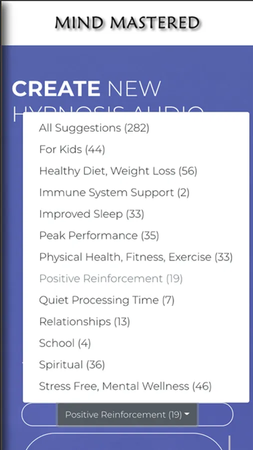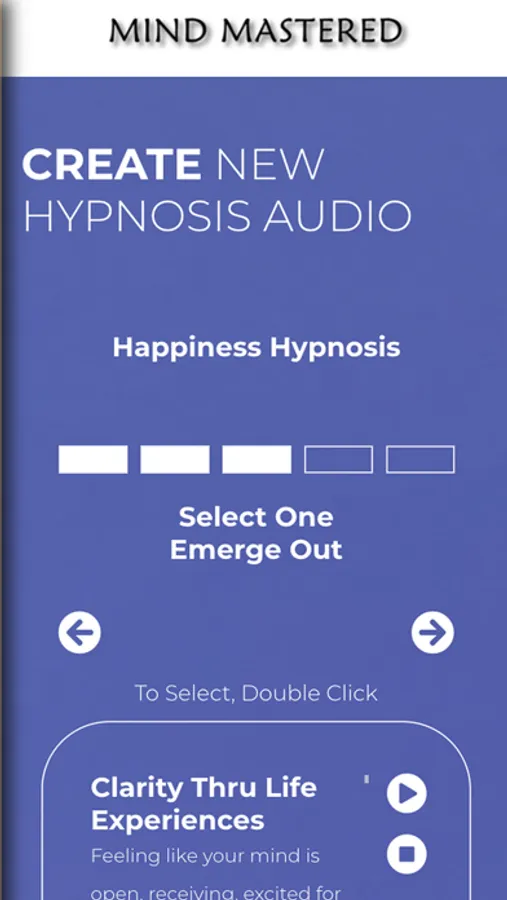 Mind Mastered is a mobile application that gives you the power to create your own customized hypnosis audio tracks. Choose an introduction, one or more suggestions, an emergence and background music. Play online or offline at your convenience.