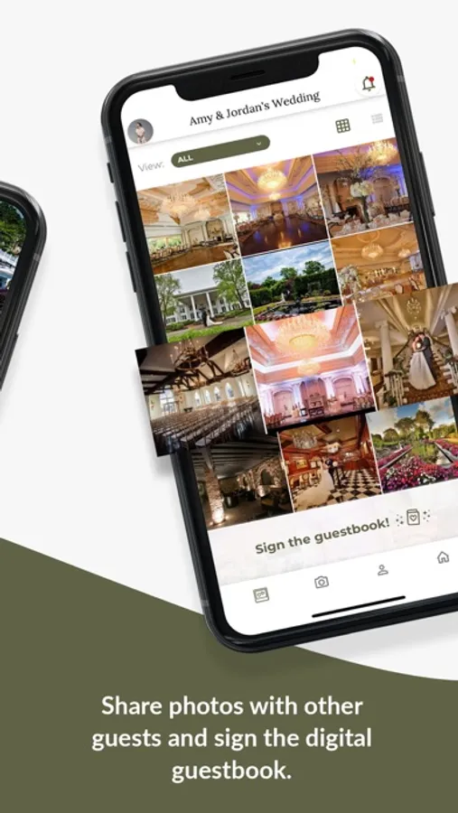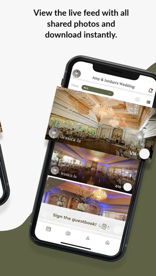 Scroll Through The Live Feed: Everyone attending the same event will have access to a shared gallery. Scroll through photos and guestbook notes uploaded by other guests while you’re there!