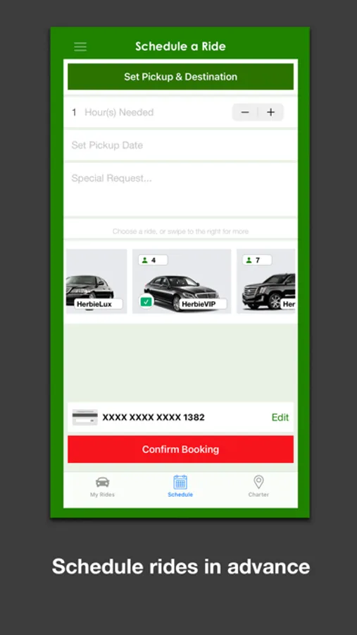 Open the app, set the date and time of your ride or charter, enter where you want to go, and a driver will be assigned to your ride to help you get to your destination.