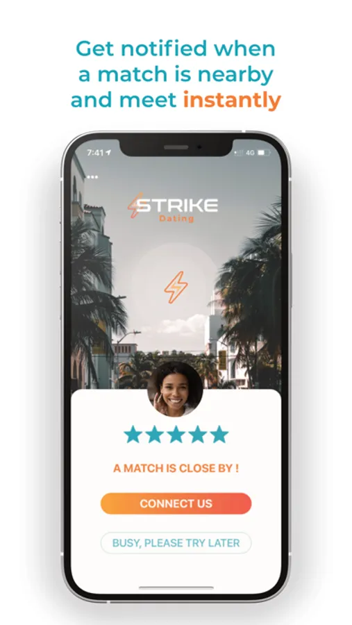 Strike notifies you when a match is nearby! Meet matches instantly without any swiping or texting.