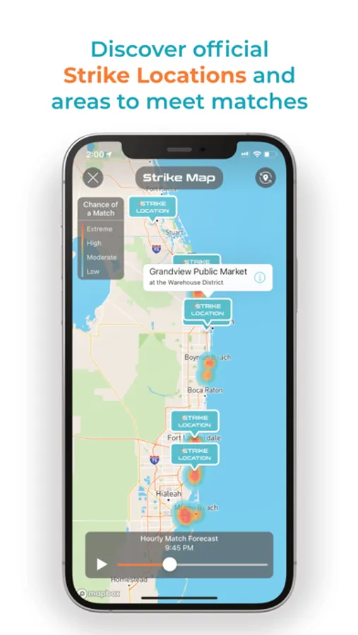 Discover your personal match-radar only from Strike: Just like a weather radar alerts you to conditions in your area, Strike lets you see exactly where the largest pockets of matches are and what events they plan to attend.