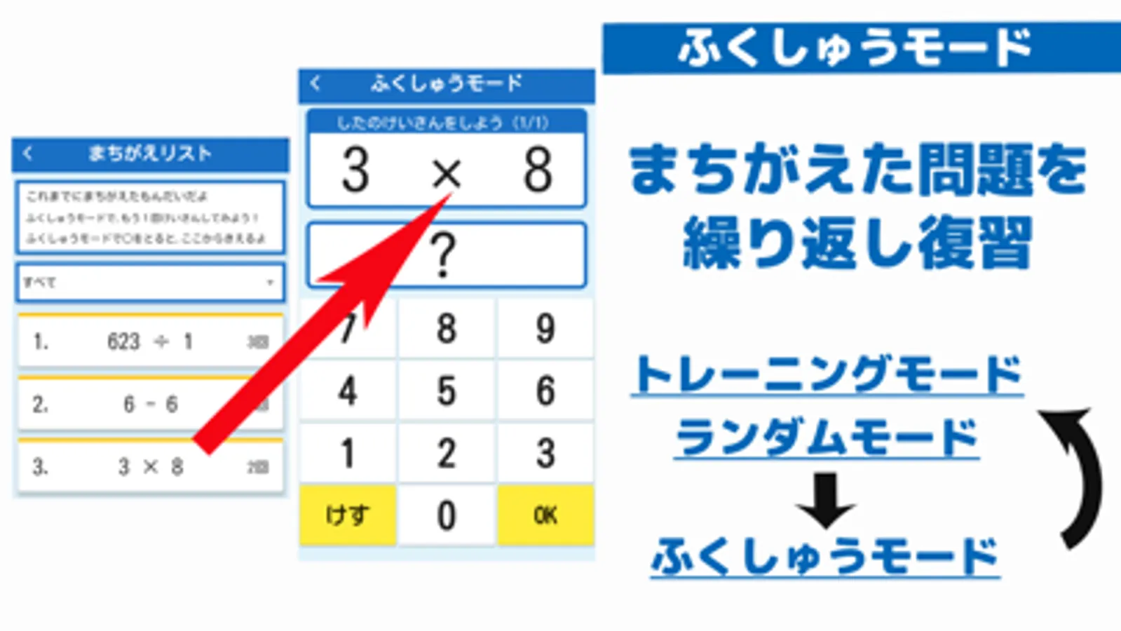 -ランダムモードで間違えた問題のみを対象とした、計算問題を「ランダム」「間違えた回数」で出題
