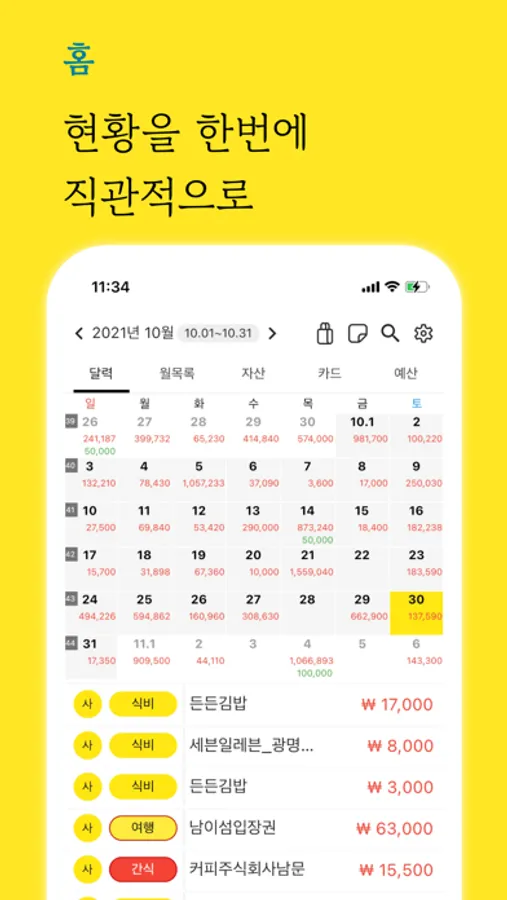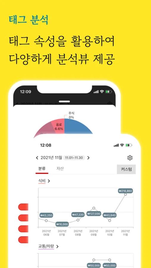- 태그의 금액이 월전체 금액에서 차지하는 비율도 볼 수 있어요