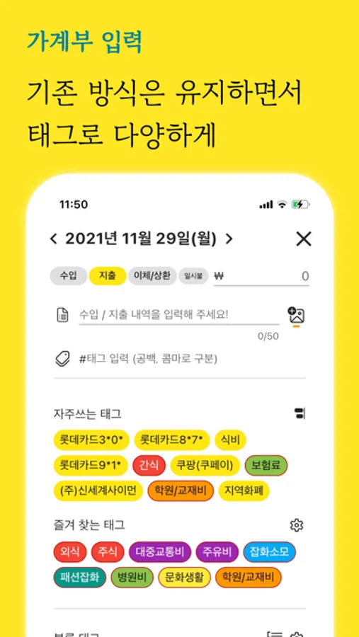 - 태그별 색상을 지정하여 눈에 띄게 하여 입력을 편하게 해보세요