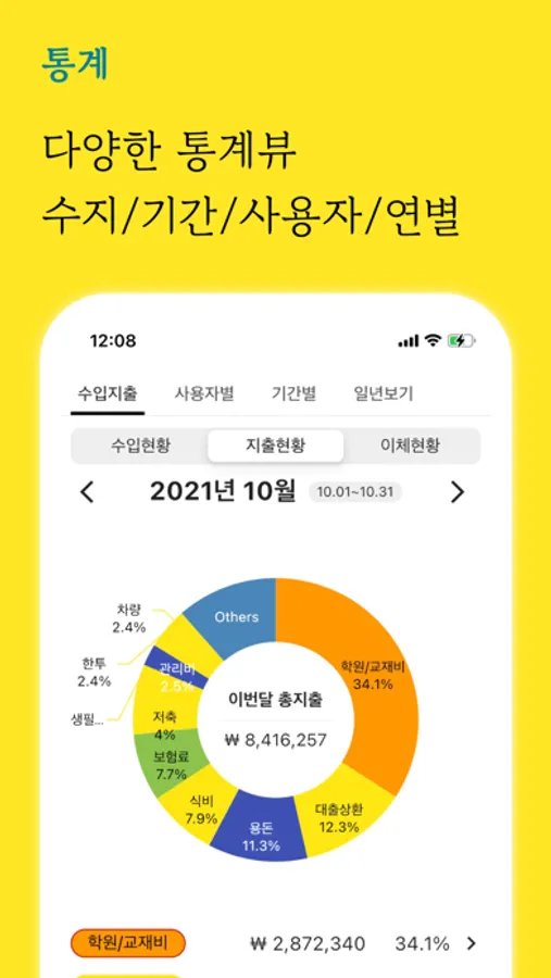 - 공유 가계부와 나의 가계부를 분리하여 별도의 가계부도 OK