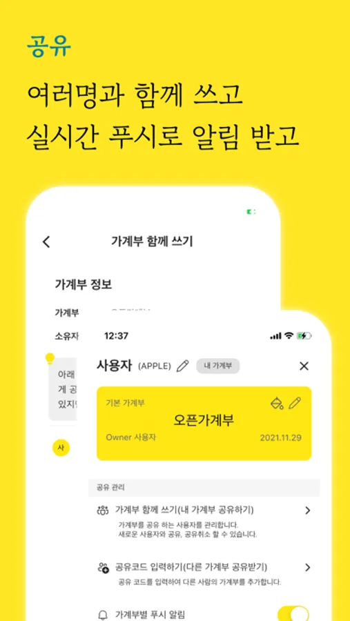 - 공유 사용자가 내역을 등록하면 바로 푸시 알람도~