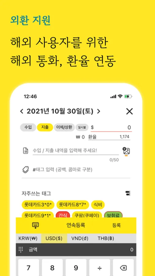 - 직구를 했다면? 달러, 유로 등 보조 통화 기능으로 입력할 수 있어요