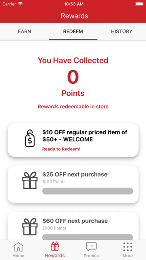 - View available rewards and track progress for future rewards