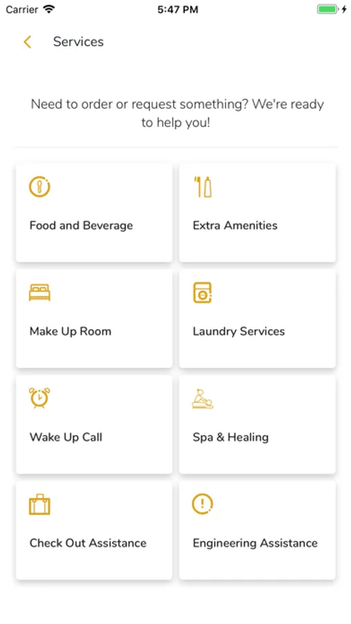 * Order in-house Hotel & concierge services (room services, amenities, etc)