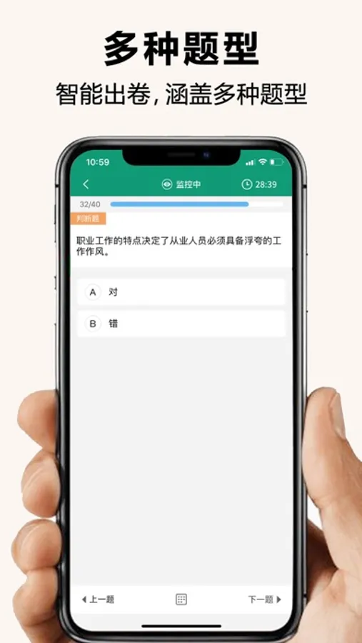 二、 支持多种题型:单选、多选、判断、填空题操作题,拍照题、附件题试;客观题可以当场出成绩,不需要老师后台阅卷;