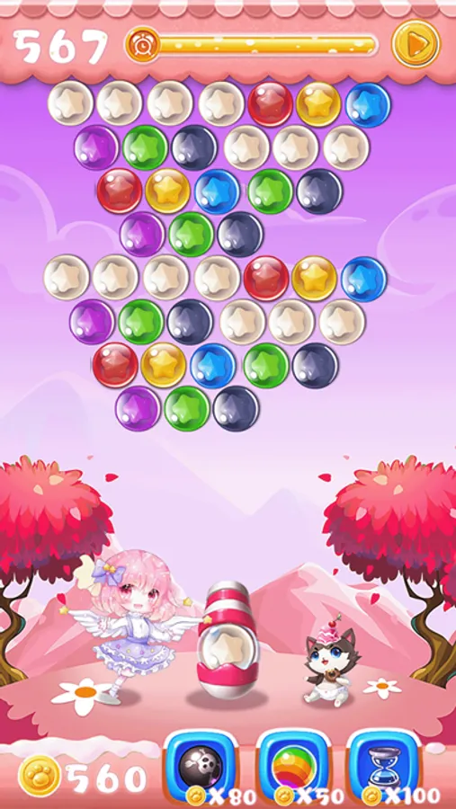 萌萌泡泡龙是一款极为经典的泡泡龙游戏,游戏画面精美,操作简单。 玩家通过控制发射架发射泡泡,组成相连的3个或3个以上相同颜色泡泡会自动消除,玩家还可以通过消除一组泡泡,使悬挂在其下的泡泡全部坠落。 游戏设置了多重关卡等你闯,休闲又益智,快来练习挑战成为泡泡龙高手吧!