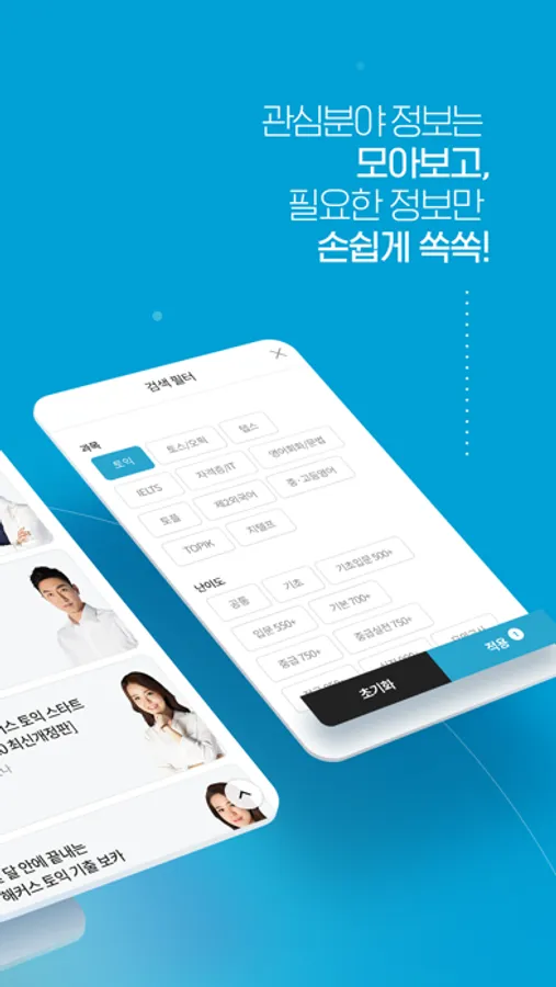 내가 선택한 관심분야의 수강신청 · 교재 정보 · 수강후기를 모아보고 검색 필터를 통해 필요한 정보만 확인하세요.
