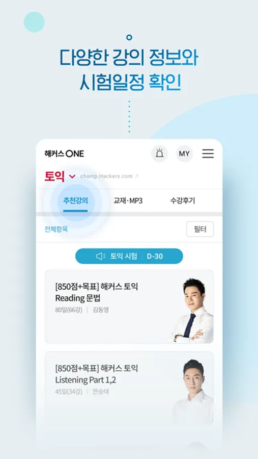 · 해커스 스타강사의 강의를 무료 체험