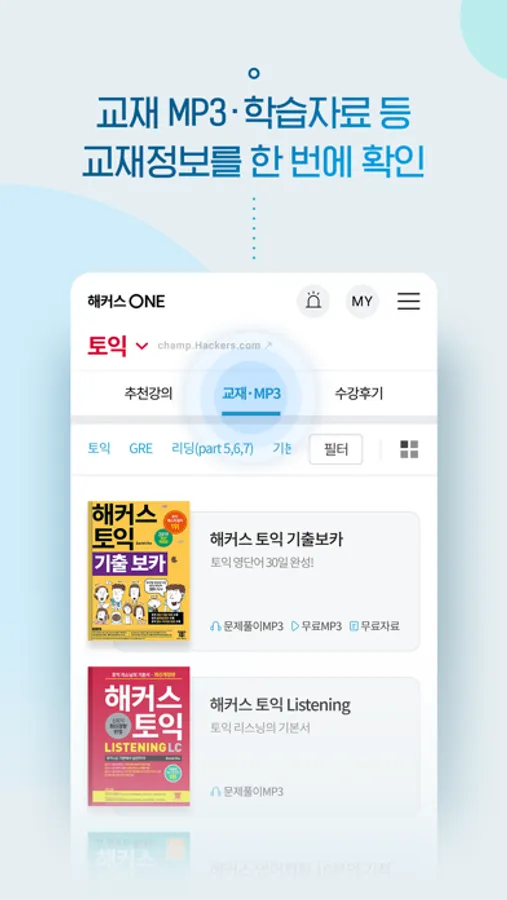 · 교재 정보 뿐만 아니라 교재별 MP3